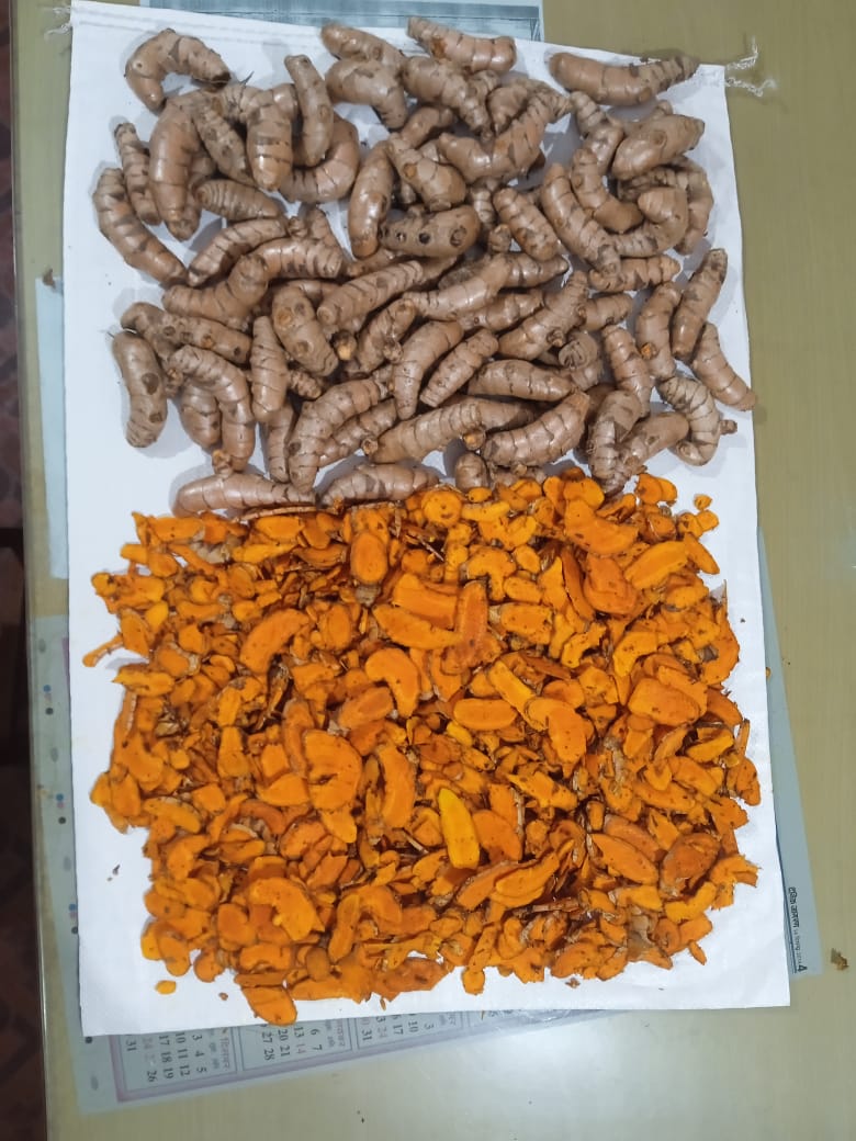 We are best at growing the pragati variant of turmeric- bright, zesty and deeply floral. the aroma is swoonworthy- rich, vibrant and fragrant with bright almost citrusy notes. The taste is earthy, deep and concentrated with delicate floral and orange flavors. This not only tastes good, it is also high in curcumin ( 4-5%) which is almost two times higher than the commercially available turmeric. The presence of curcumin gives it the antioxidant and anti- inflammatory properties.